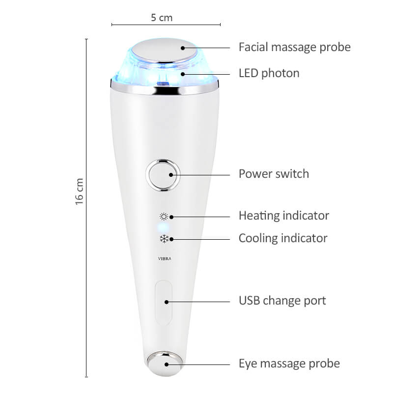 Vibration: Vibration with heating therapy: Assist to penetrate nutrition deep into the skin, remove wrinkle fines, remove black circles around eyes, Vibration with cooling Therapy: Lift up and firm skin, shrink pores, lighten and shape face.