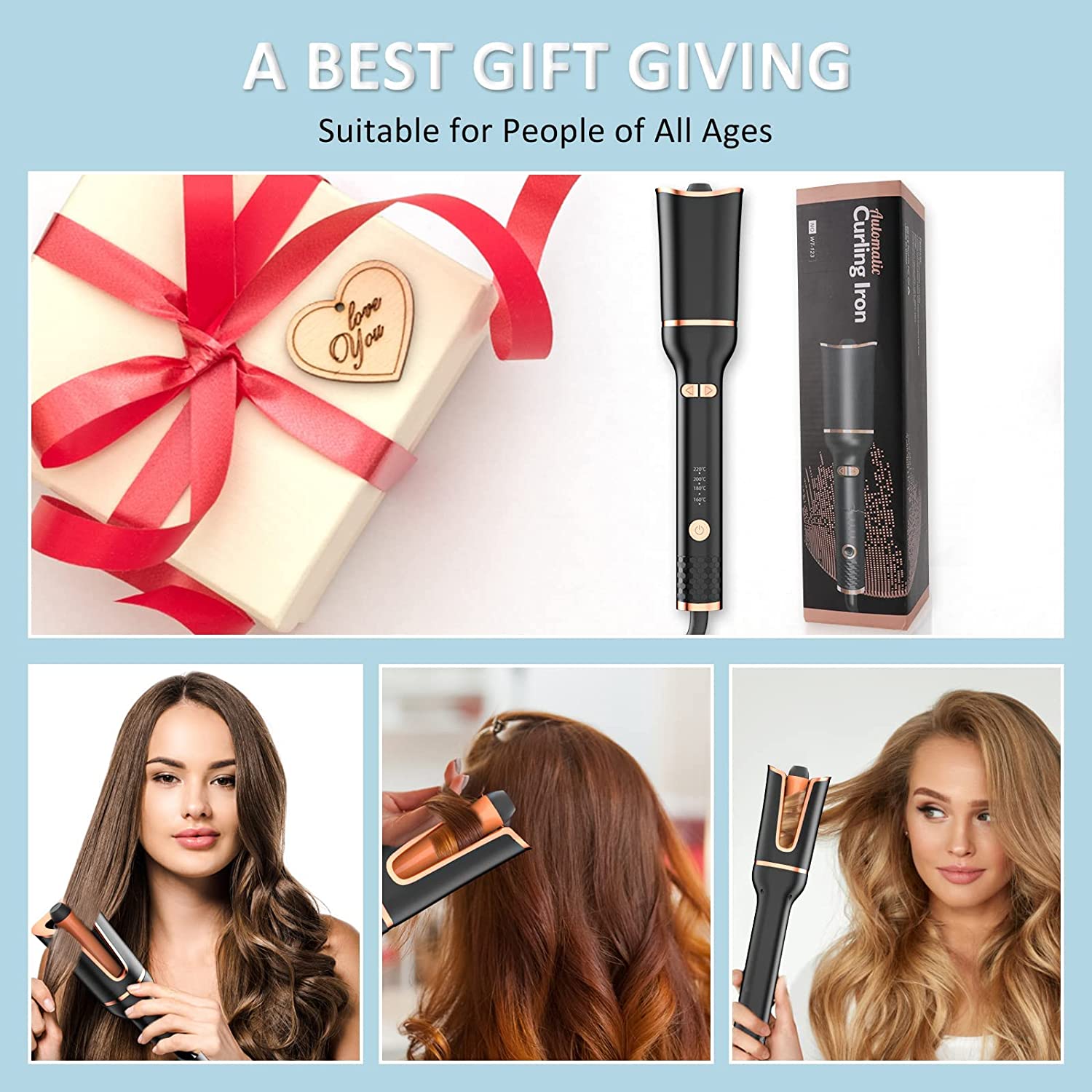Plug and Play & Anti-Scalded - The auto hair curler has a 1.8-meter power cord (don’t worry about running out of power), can be rotated 360 degrees without winding. This automatic curling iron adopts a double-layer heat insulation design, can protect your skin from being burnt during use.