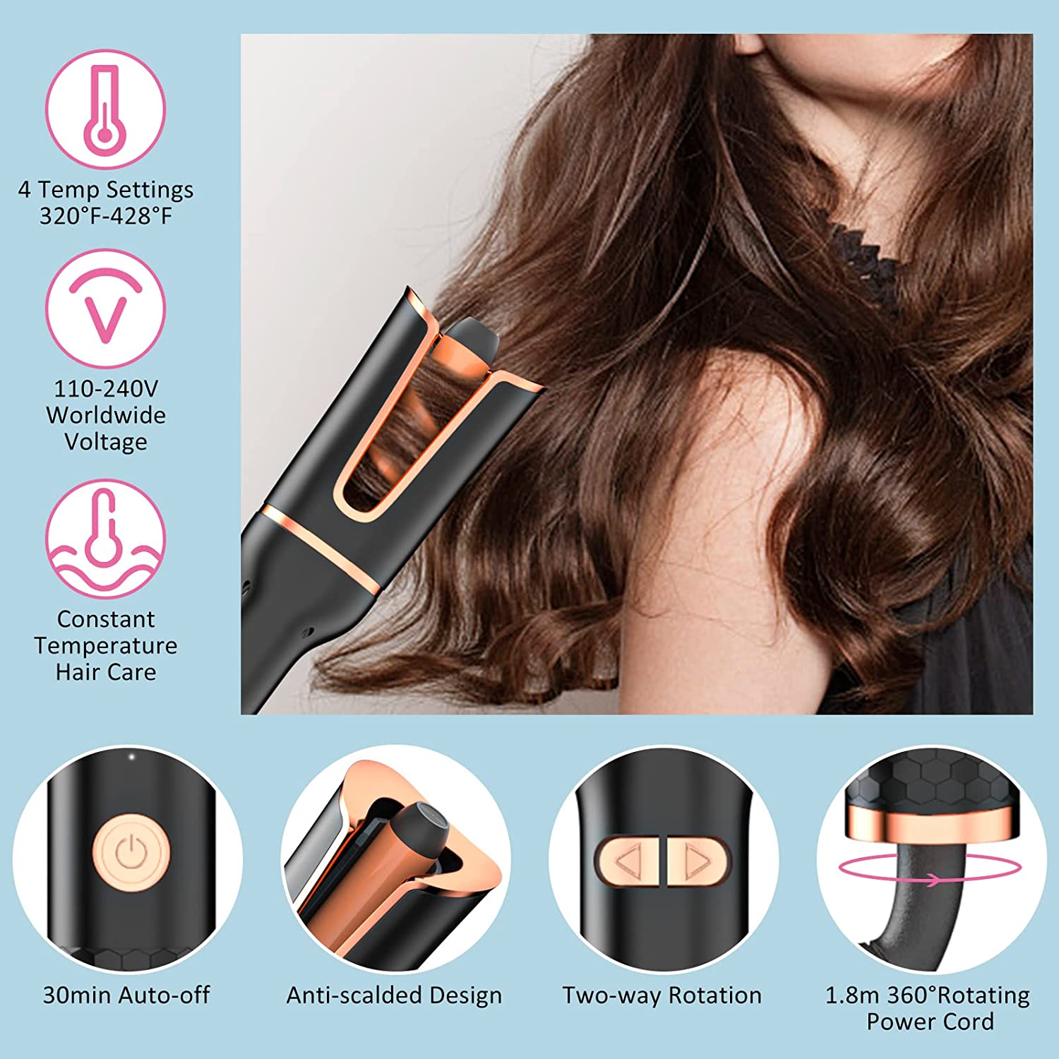 Tangle Protection & 30 min Automatic Shut Off - Auto curling iron adopts a smart chip and has a smart anti-stuck hair function. It will automatically stop running when the hair volume is too large or the hair is stuck,30 minutes of inactivity will automatically shut down, safe and reliable.